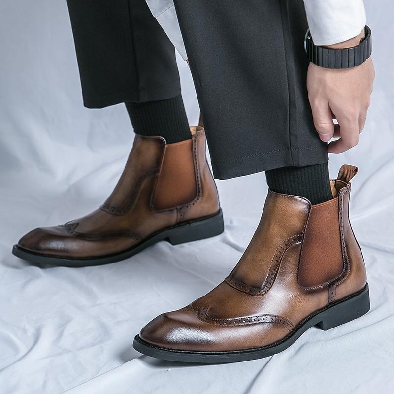 Boots Men Casual Comfortable Fashionable Block Boots Men Business Office Brand Chelsea Boots Black Brown Size 38-45 Men Boots