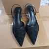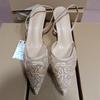 Mesh Flowers Embroided Women Pumps Elegant Pointed toe Beading Thin High heels Summer Slingbacks Ladies Wedding Shoes