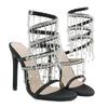 Summer Rhinestone Golden Crystal Sandals Women's String Bead High Heel Gladiator Sandals Wrap Strap Night Club Shoes