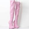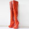 FHC Extreme High 7"/18CM Wedges Heels Crotch Boots,Patent Leather Thigh High Botas,Lace-up Sexy Platform Zip Ballet Shoes,Black