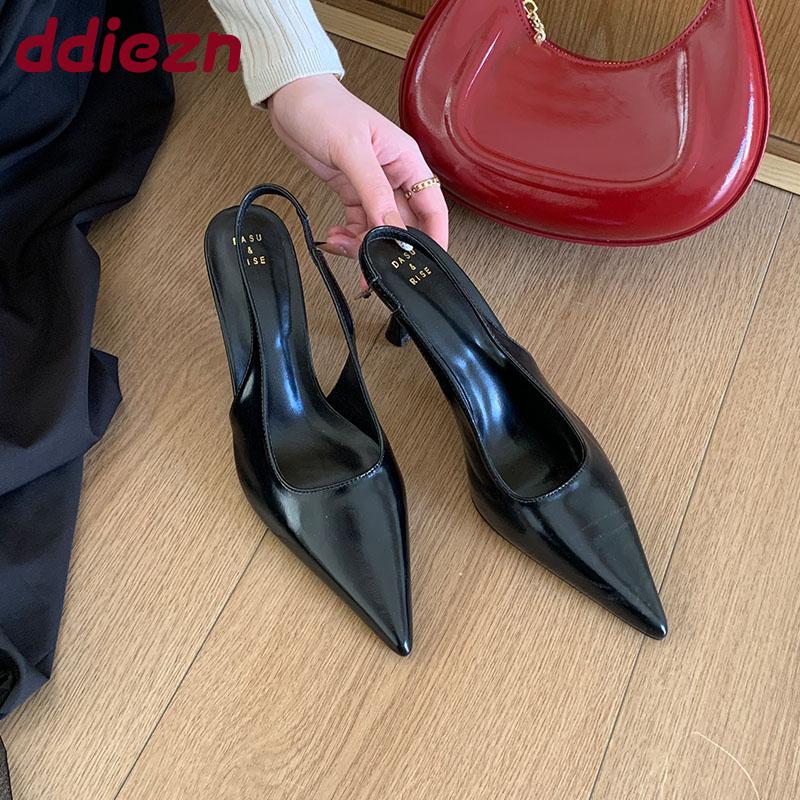 Footwear Pumps Women High Heels Shoes Slingbacks Female Slides Shallow Pointed Toe Ladies Heeled Sandals Shoes