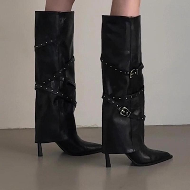Women High Boots High Heels Designer Dress Shoes Pointed Toe Knee High Boots 2025 Winter Pumps Luxury Sexy Mujer Bootas
