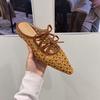 Flat-bottomed bow new Muller shoes heightened 2025 Xiaoxiangfeng summer woven breathable half slippers hollow one-word drag
