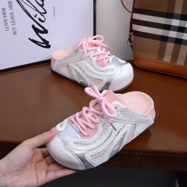 Muffin thick bottom mesh breathable bag head half slippers women's summer wear 2025 new one-pedal lazy ugly cute sandals