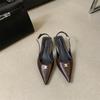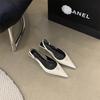 Francouzské černé temperamentní jehlové vysoké podpatky s mašlí sandály vílí boty 2025 nové jaro a léto špičaté lodičky