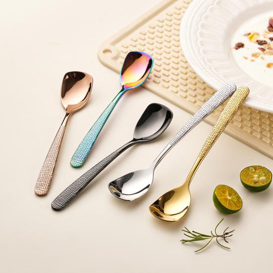 Anti-Slip Grip for Enhanced Comfort: The hammer pattern design of this stainless steel spoon increases friction, ensuring a secure and comfortable grip. Perfect for one-handed use, it's ideal for daily tasks in households and student life.