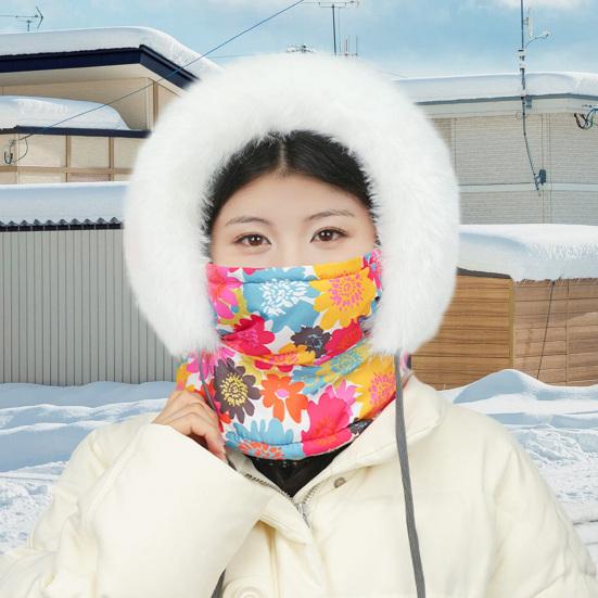 Balaclava Ski Face Cushion for Women Fleece Lined Windproof Floral Scarf Hat