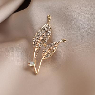Elegantní brož ve tvaru listu, špičková dámská univerzální brož s diamanty, špičkový a lehce luxusní brožový doplněk