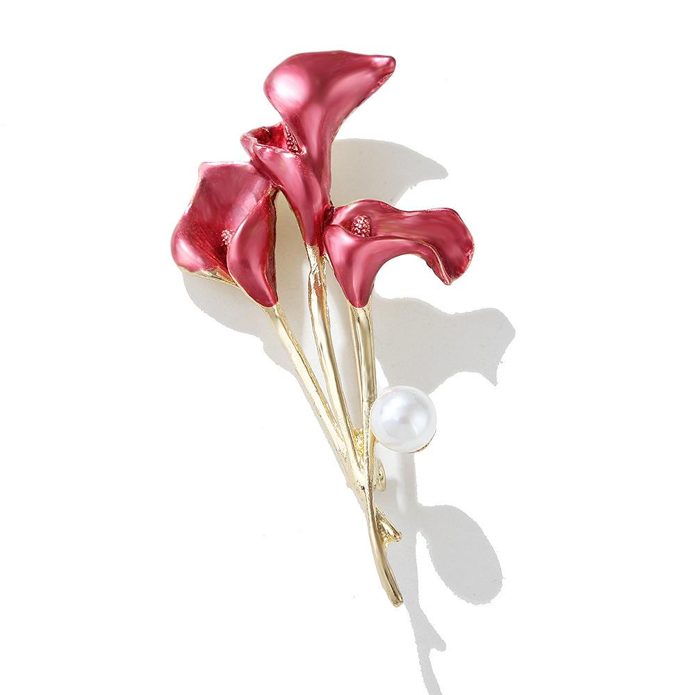 Elegant Calla Lily Brooch Handmade Enamel with Zirconium Plant Corsage Light Luxury Temperament High-grade Pin Accessories