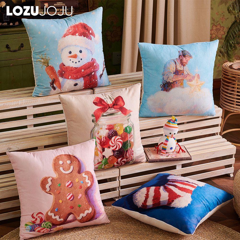 1PC LOZUJOJU Christmas Pillowcase Polyester Printed Comfortable Pillowcase Cushion Cover for Sofa Living Room Bedroom Home Decor Party Decor