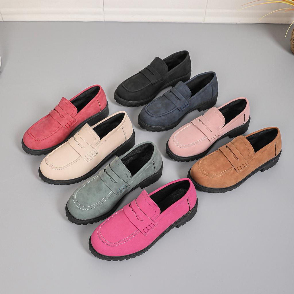 2025 new large size thick heel spring and autumn casual matte British style women's shoes thick sole foreign trade shallow mouth loafers