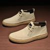 Suede Leather Casual Shoes for Men Mid Top Solid Color Retro Men's Shoes Leather Platform Shoes Thick Soled Board Shoes Man