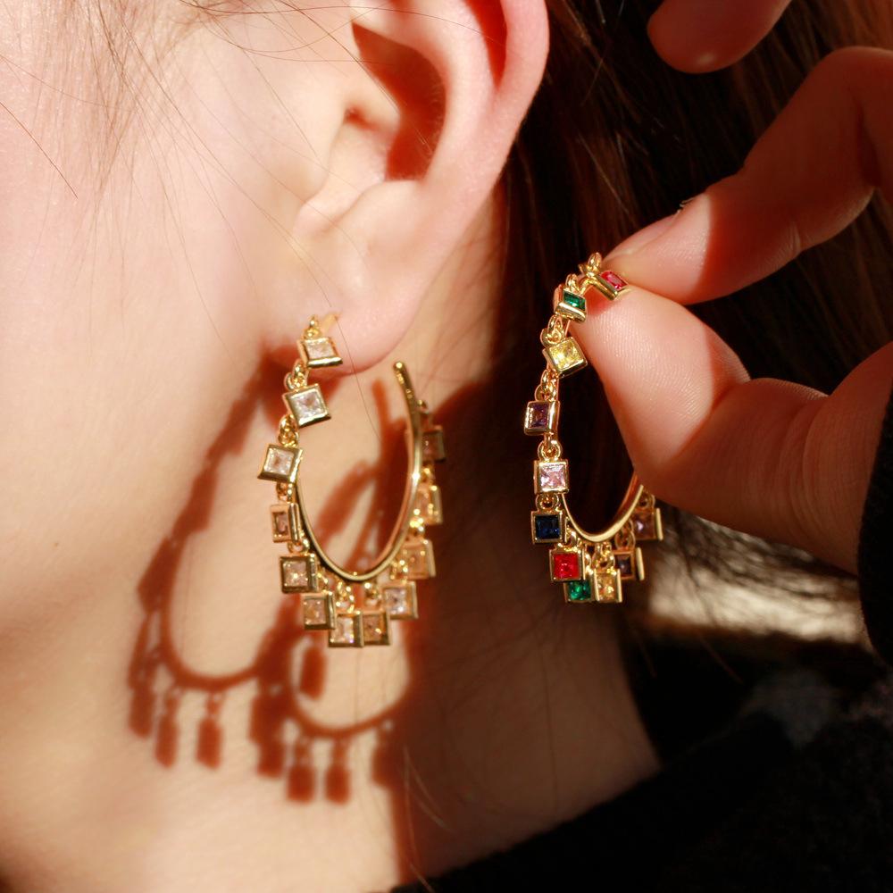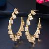 Fan Exaggerated Large Circle Copper Gold-Plated Zircon Earrings Famous Wind Fringed Earrings C-Shaped Earrings