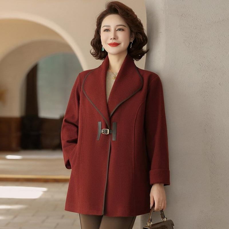 Women's clothing Noble wife tops Spring and Autumn new woolen coats Medium and long woolen coats