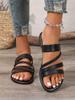 European and American large-size solid color 2025 summer new round head flat bottom fashion casual outer wear one-character sandals women
