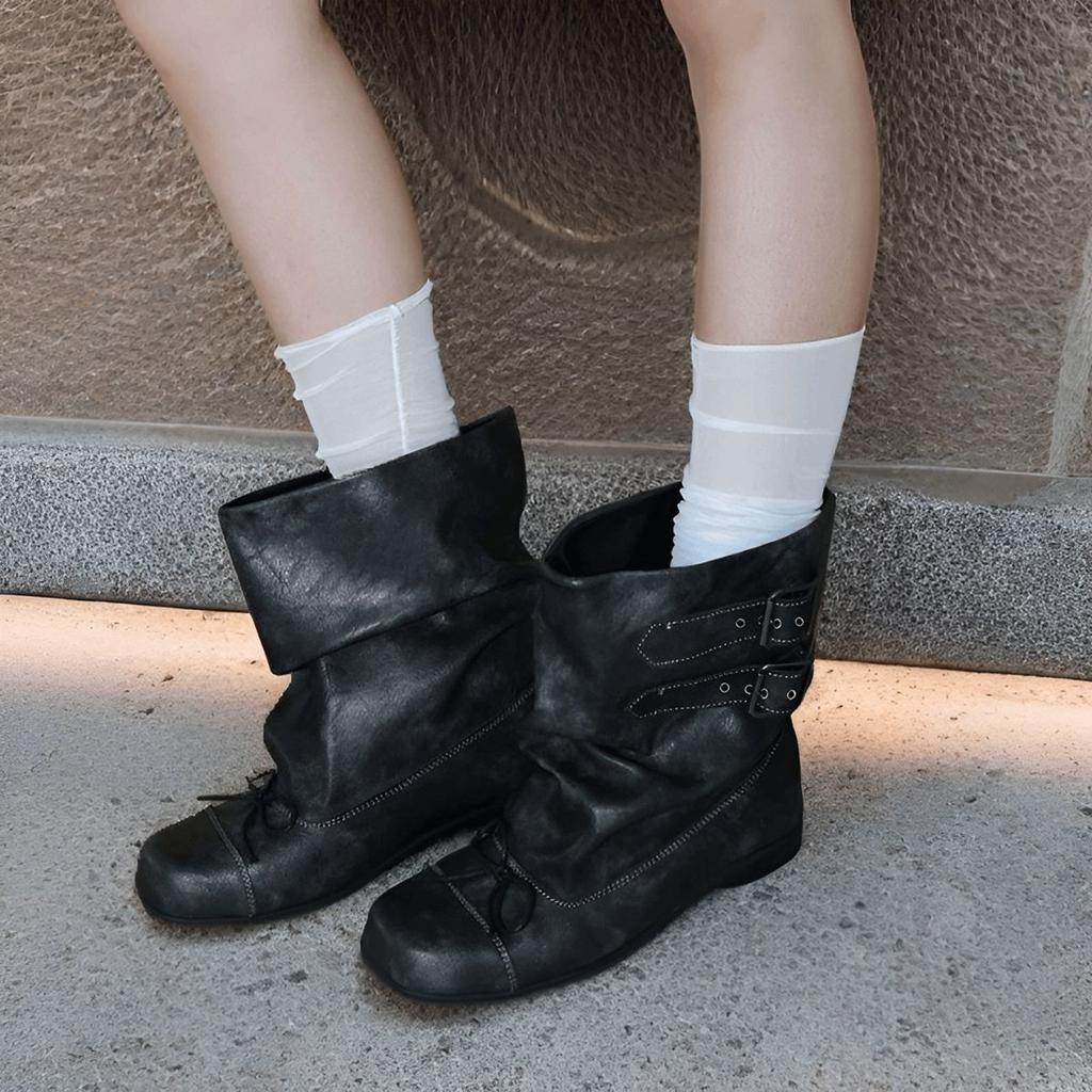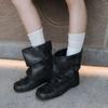 Square head bow pleated piled boots women's fashion western cowboy boots ballet short boots retro old Martin boots