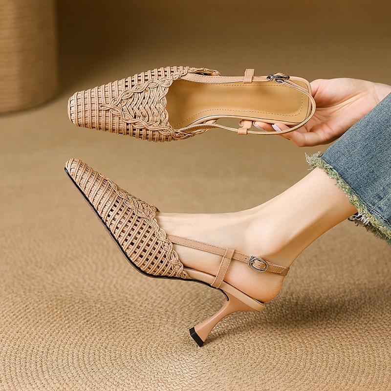 French niche design sense woven square head hollow bag head sandals women's skirt summer green vacation sandals