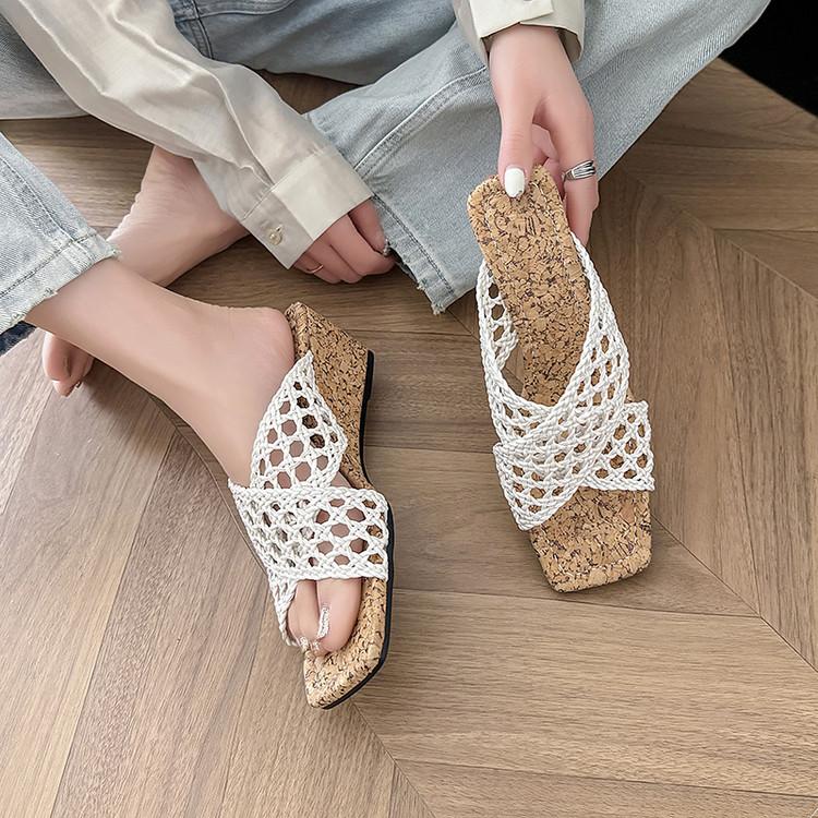 Retro casual cross sandals 2025 summer new knitted slippers women's platform versatile outer slippers