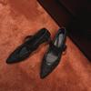 Leather hollow woven one-word buckle Roman sandals women's 2025 spring and summer round head flat bottom Mary Jane hole shoes