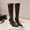 Brown retro long boots 2025 new pointed high heel side zipper fashion boots female sexy babes long boots