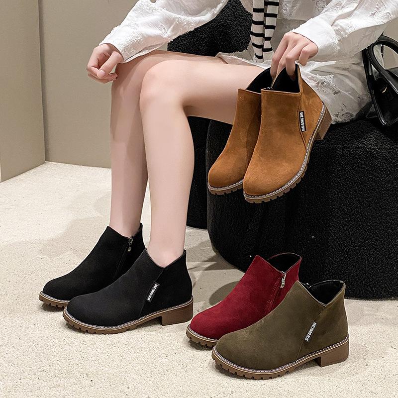 2025 new square heel thick heel one pedal women's shoes autumn and winter Martin boots women's large size women's shoes