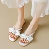 Lightweight Square Toe Flip Flops Summer New Open Toe Bow Thin Strap Soft Sole Non-slip Wear-resistant Flat Slippers