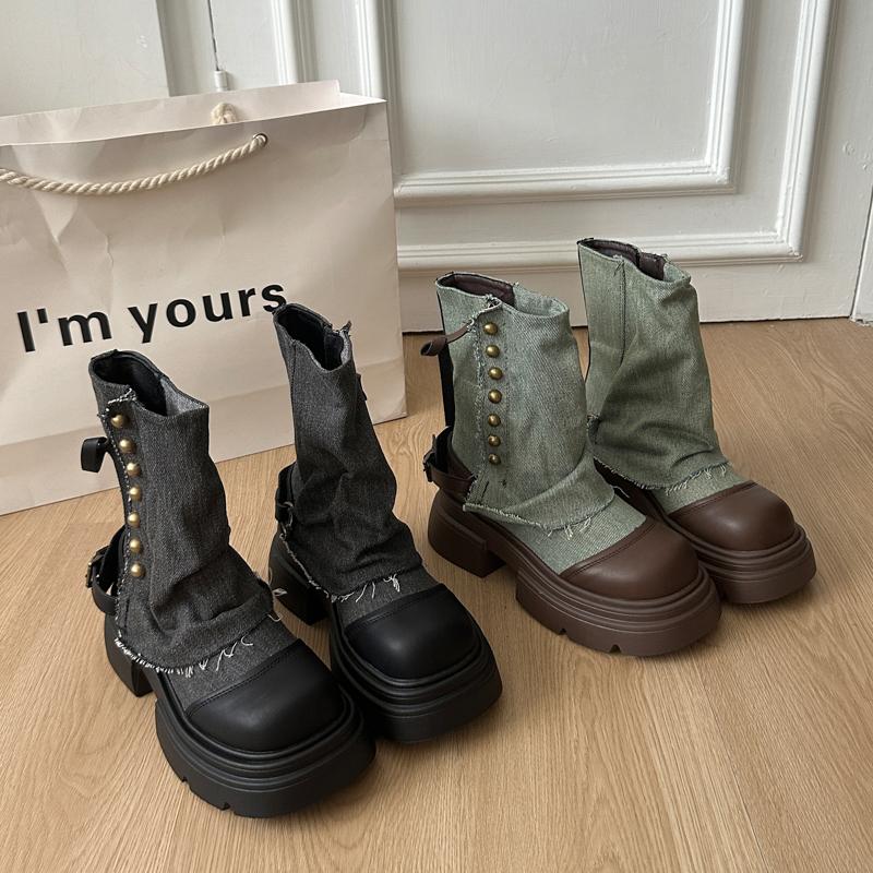 Fashion Chunky Women Ankle Boots Designer Platform Heel Shoes Autumn Winter Denim Short Booties Zapatos De Mujer