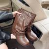 Autumn Winter Women Western Cowboy Boots Fashion Belt Buckle Thick Heel Shoes Ladies Vintage Pleated Short Booties