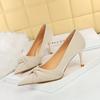 2024 New Korean Elegant Banquet High Heels with Thin Heels and Shallow Mouth Pointed Bow Women's Singles