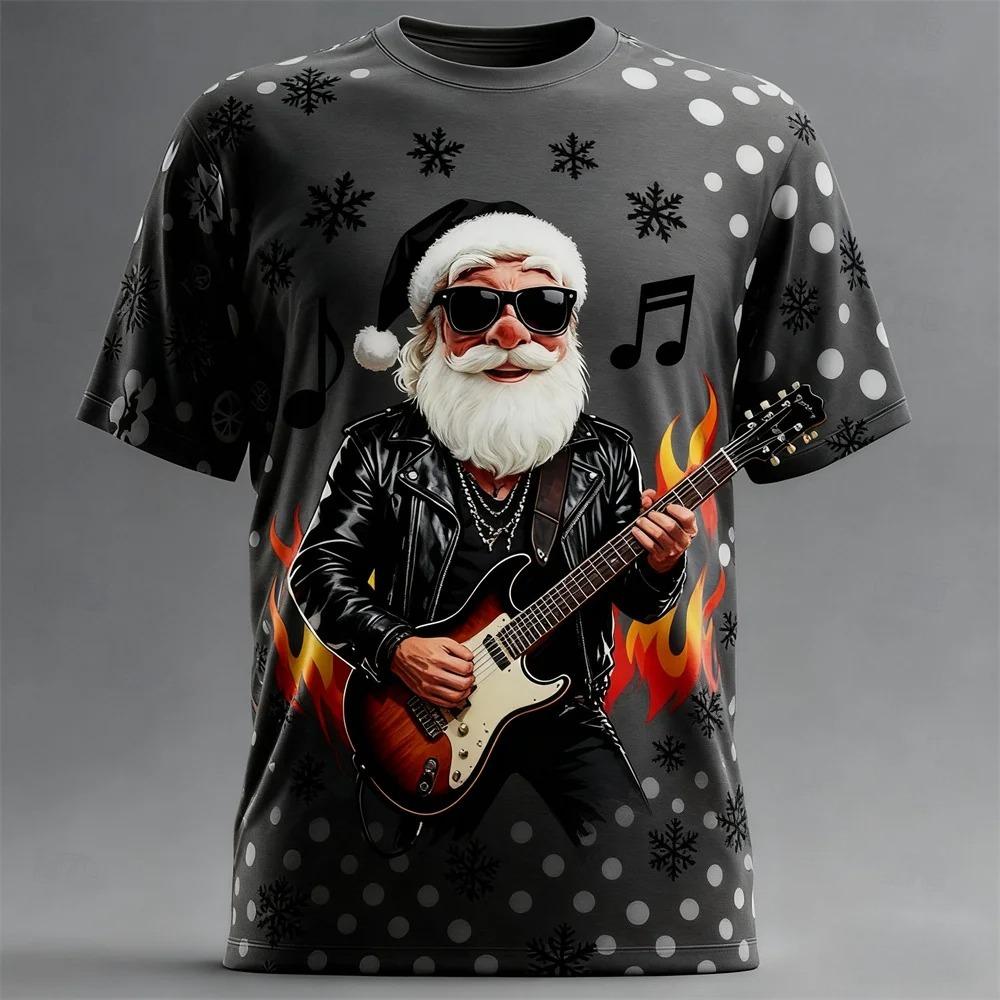Pánská trička s dlouhým rukávem s módním 3D potiskem vzoru Santa Clause s kulatým výstřihem - Měkká polyesterová tkanina se střední pružností, letní oblečení volného střihu