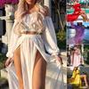 2ks/sada Letní ležérní kostým Šikmé topy s dlouhým rukávem Vysoký pas Šněrovací sada minisukně UV ochrana Rychleschnoucí outfit