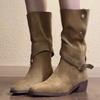 Pointed Toe Women Mid Heels Suede Mid Calf Boots Fashion Buckle Shoes 2025 Designer Elegant Short Boots New Dress Chunky Pumps