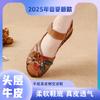 2025 flat bottom women's sandals leather beef tendon sole side air non-slip soft bottom soft surface ethnic style