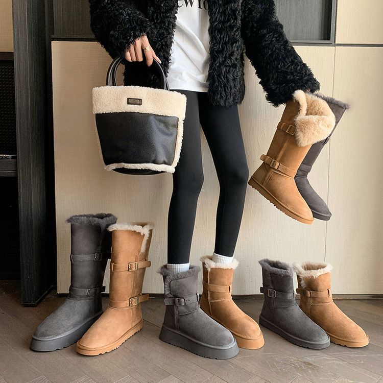Platform Snow Boots Women's 2025 Winter New Fleece Thickened Grey Knight Boots Warm Large Cotton Shoes