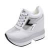 Inner height increase Xiaobai women's autumn lace-up thick-soled leisure sports wedge heel single shoes