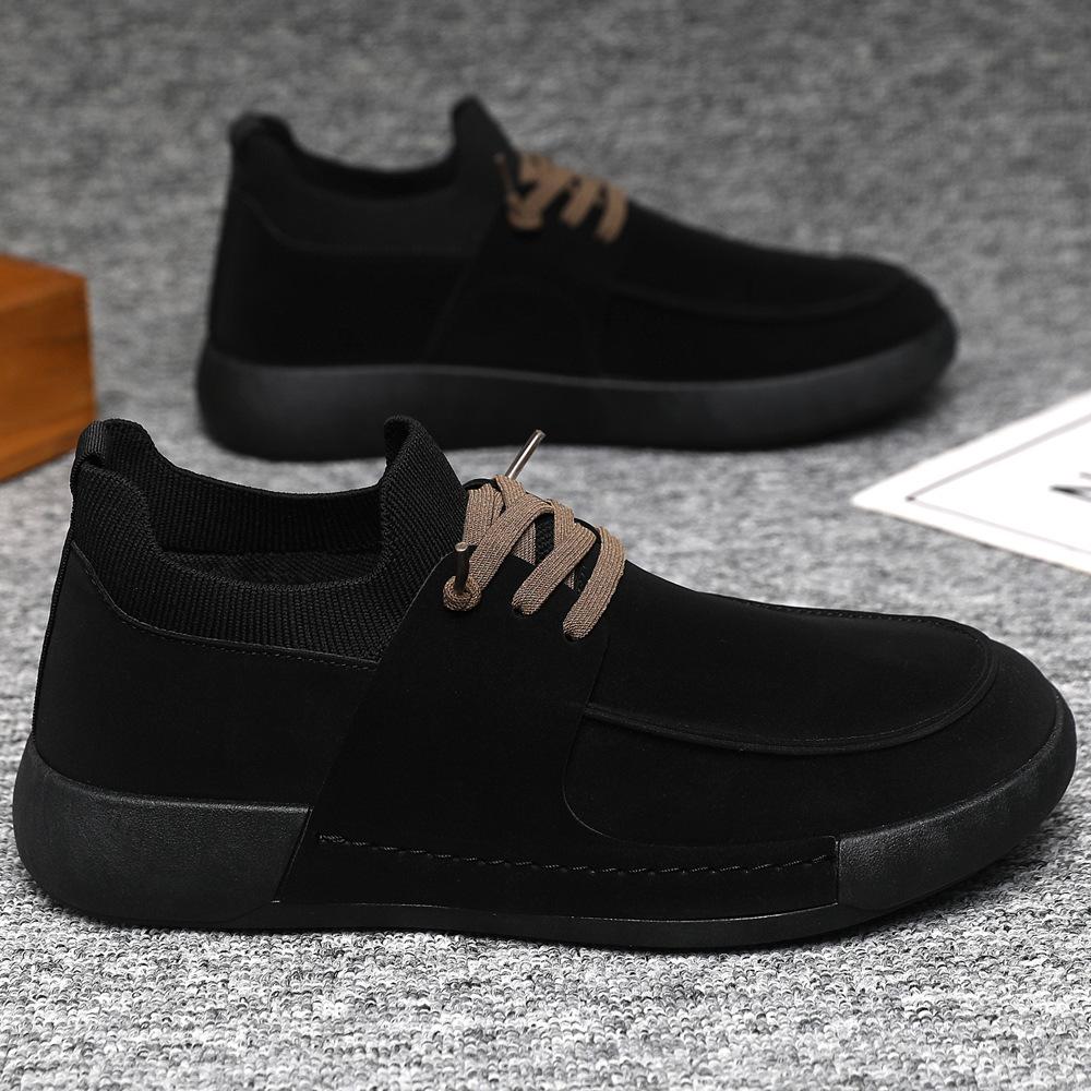 Brand Black Men's Shoes Fashion Suede Casual Flats Non Slip Oxford Shoes for Men Lace Up Vulcanized Shoes Quality Men'sneakers