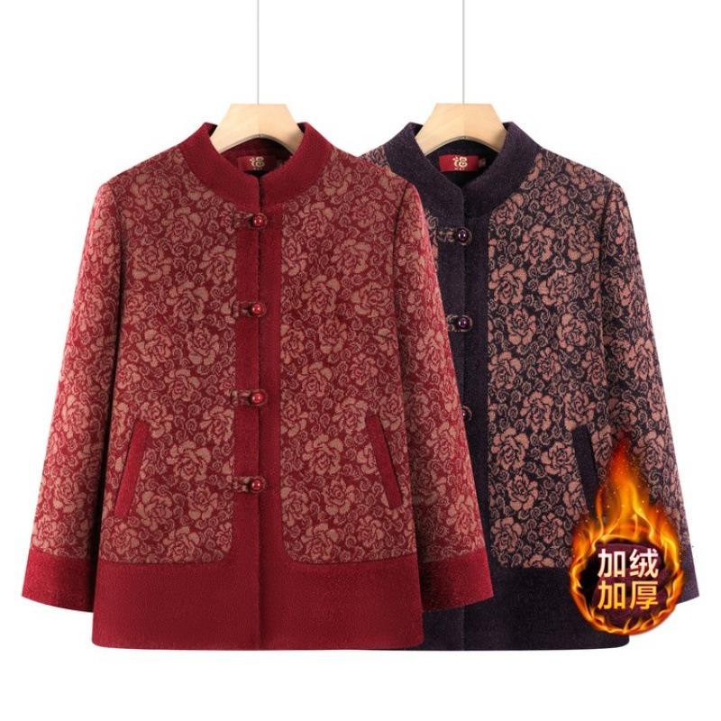 Winter coat autumn and winter thickened woolen top old lady winter velvet clothes women thick