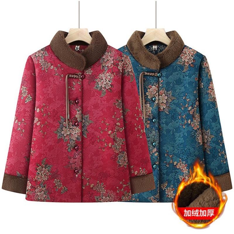 Fleece small cotton-padded clothes old lady clothes stand-up collar cotton-padded jacket clothes