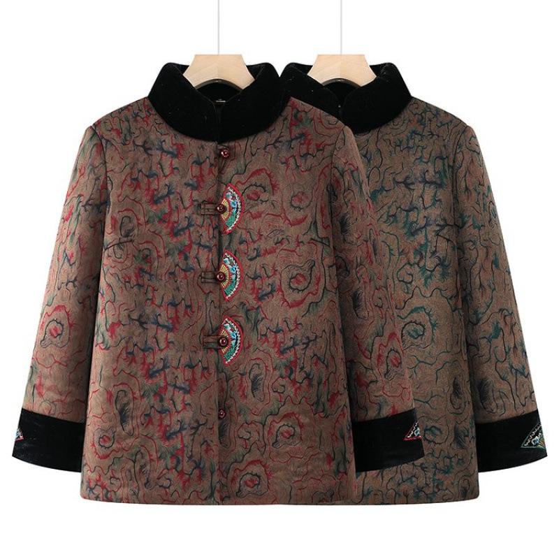 Winter cotton-padded clothes, women's thickened cotton-padded jackets, old ladies' velvet warm jackets