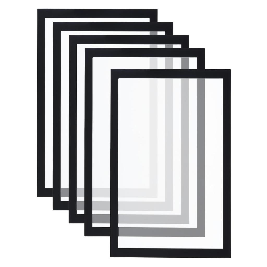 Specifications Color: Black Material: PVC, flexible magnetic rubber Overall size: 325 x 238 mm / 12.8 x 9.4 inches (length x width) Inner frame size: 297 x 210 mm / 11.7 x 8.3 inches (length x width)