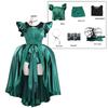 This cosplay costume features a vibrant green dress inspired by the Addams Family Wednesday character, crafted from soft polyester fabric with a 20% blend of gentle wool.suitable for various sizes from XS to 3XL. Perfect for game and anime role-play, it supports comfortable wear during conventions or themed events. Wipe clean with a damp cloth to maintain its vivid colors.