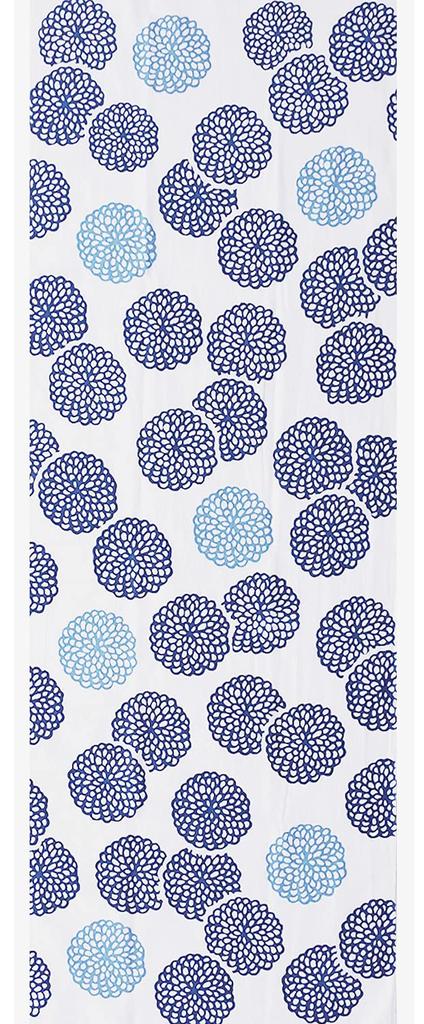 IKS Tenugui Hand Made in 34 x 88 Flower Prime Fabric Chū-sen Towel, Japan, cm, "Chrysanthemum Blue" Design, 100% Cotton, (Uncut)