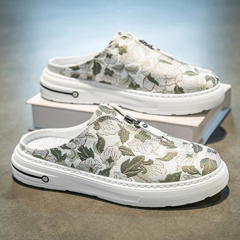 Trendy Canvas Half Slippers Mens Summer New Comfortable Breathable Casual Shoes Fashionable One-Pedal Cloth Shoes Men