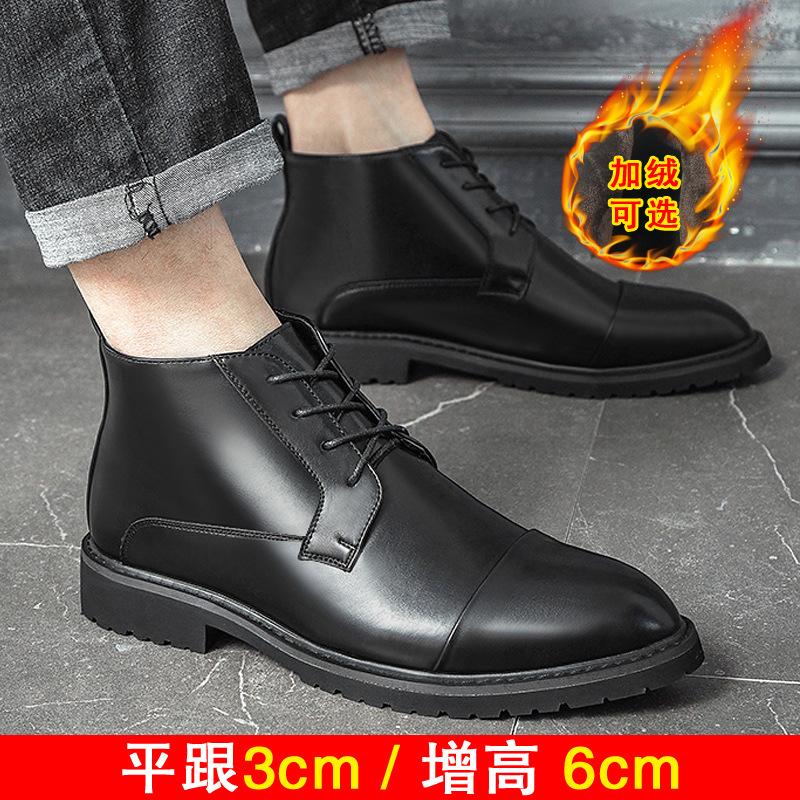 Winter leather boots high-top leather shoes men's height-increasing three-joint Chelsea boots British pointed velvet cotton Martin boots