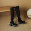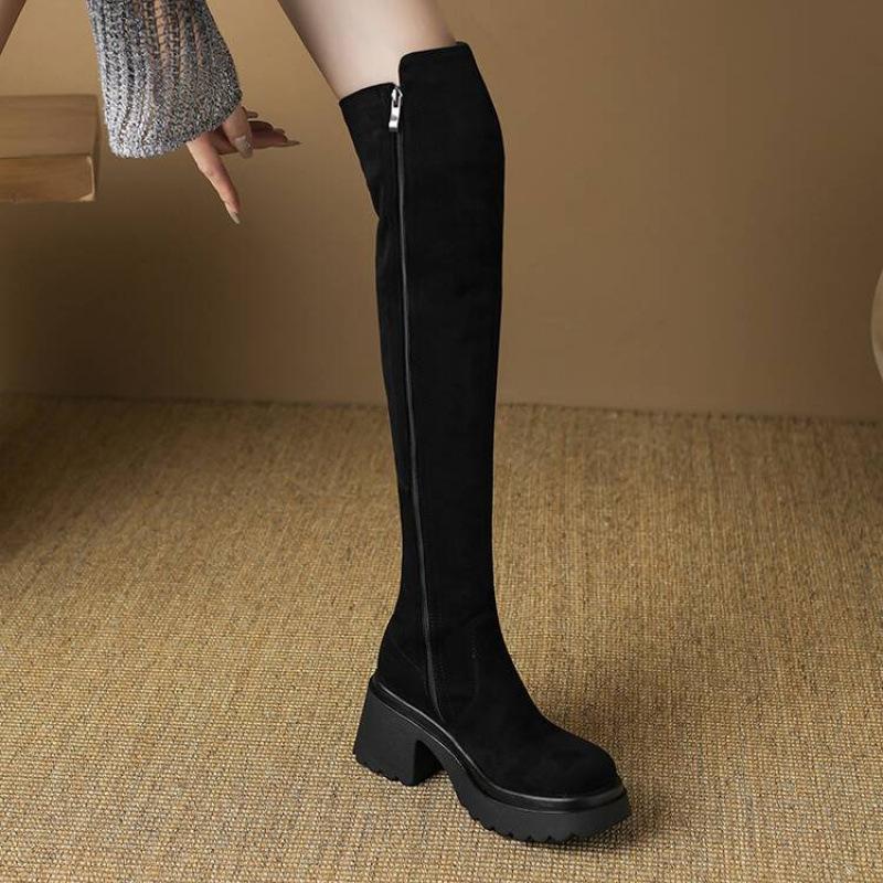 Korean version suede high-heeled large-size women's boots comfortable side zipper solid color square-heeled thick-soled leather boots non-slip autum