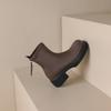 New medium heel large size women's boots rear zipper solid color autumn and winter platform Martin boots Korean version non-slip medium boots women