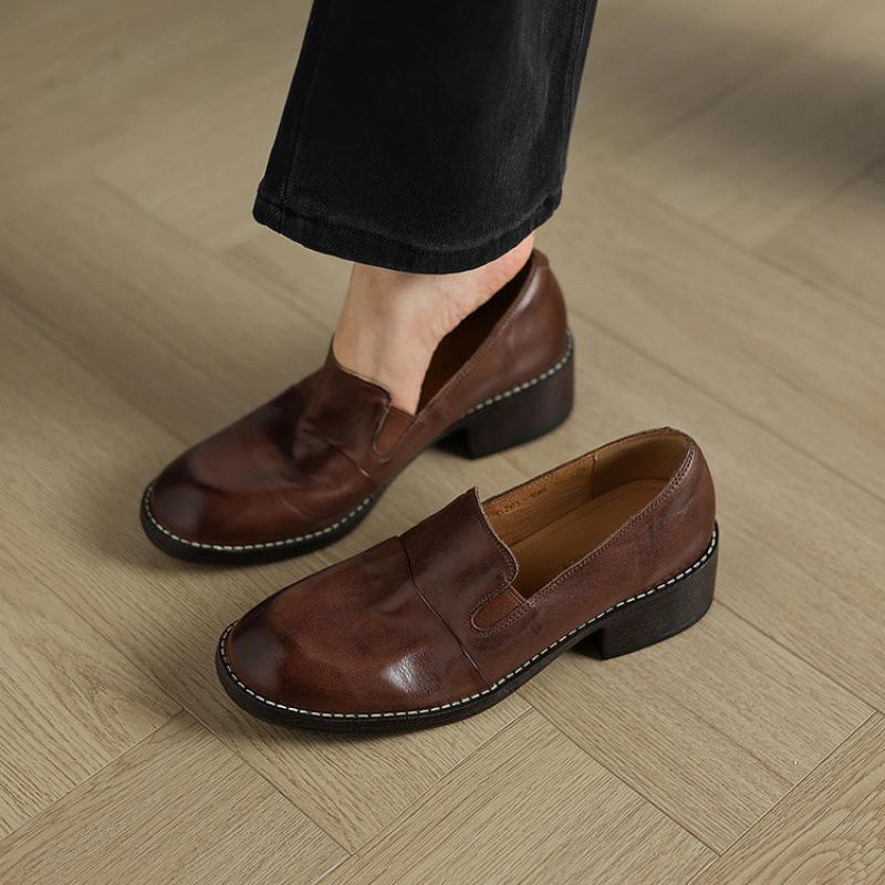 New women's fashion single shoes round head foot cover comfortable non-slip soft sole large size sheepskin women's shoes one pedal small leather shoes