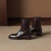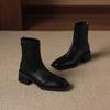 New leather women's large-size Martin boots solid color round head middle heel comfortable square heel autumn and winter rear zipper middle boots