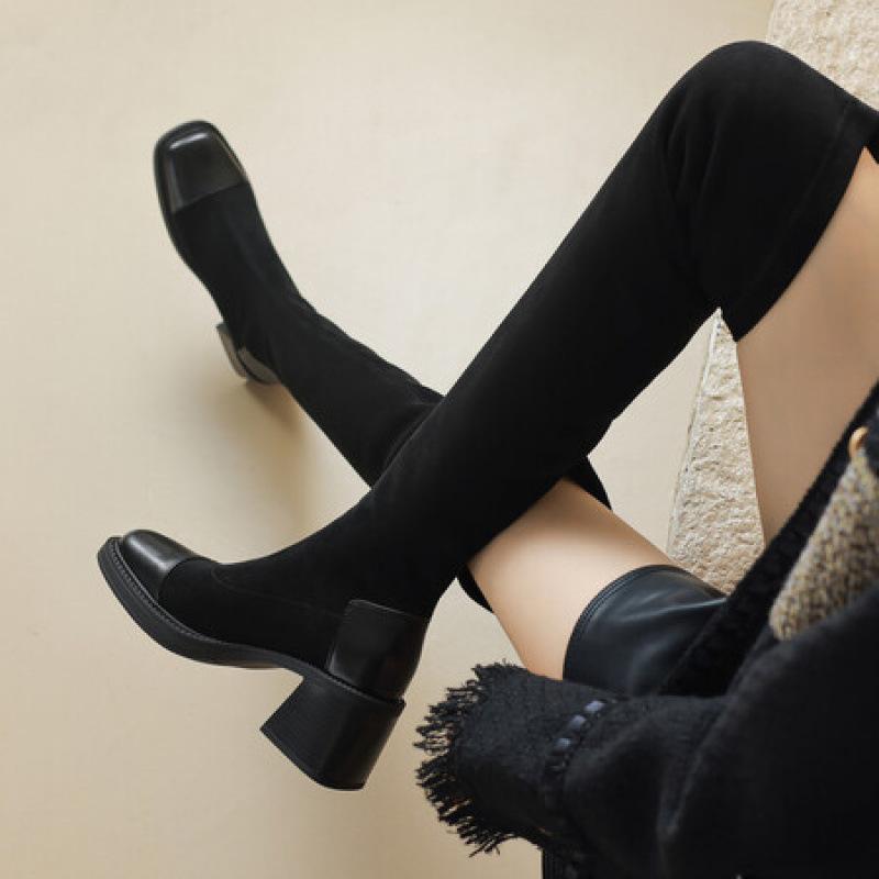 Korean version autumn and winter suede large size knee boots solid color rubber sole non-slip comfortable thick-soled leather boots new Martin b