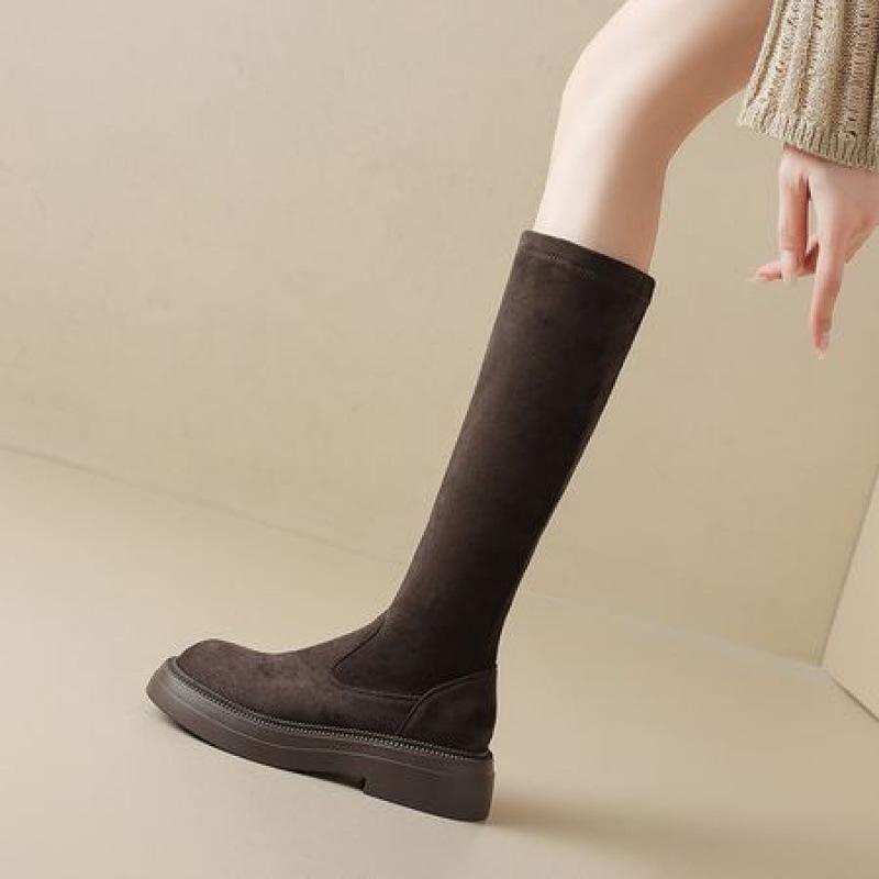 Autumn and winter suede thick-soled non-slip Martin boots comfortable sleeve middle heel round head high boots new square heel women's boots